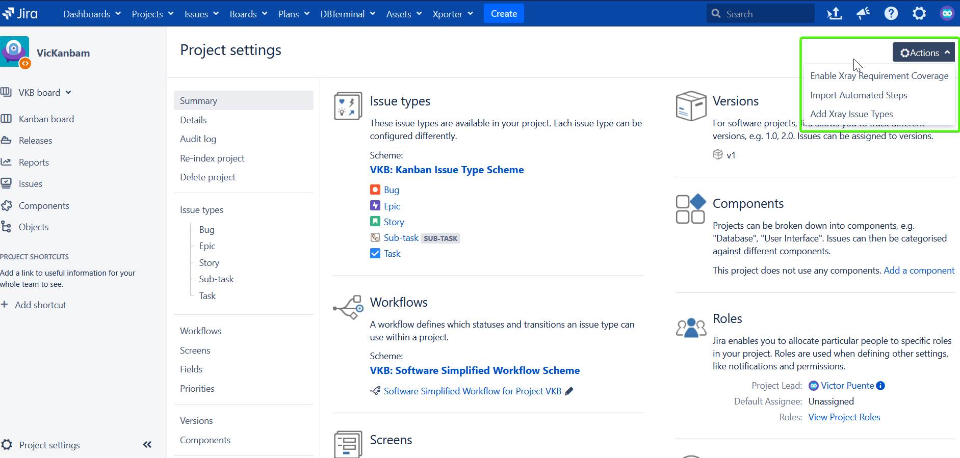 - The Document Generator button should not show in this project, as it does not have Xray configured. **