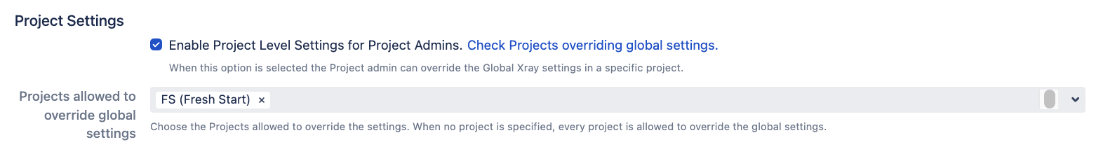 - Global admins can still override global settings for any project, even if the project is not on the list of projects allowed to override them: