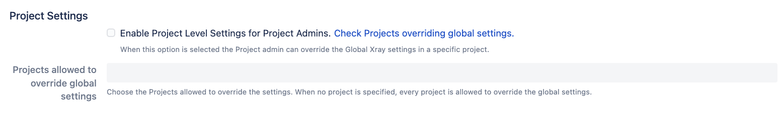 - Go back to Jira Administration > Manage apps > Xray > Miscellaneous, change the Project Settings configuration (disabling it and removing the project from the list of projects allowed to override global settings):