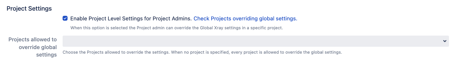 - Go to Jira Administration > Manage apps > Xray > Miscellaneous, and enable Project Settings: