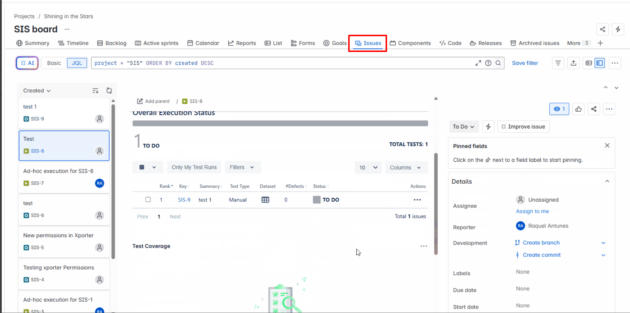 - Try executing the test via the Issues section in the navigation menu.
