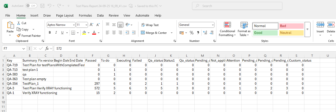 XRAYCLOUD-9120 Test Set List Report shows wrong values on the Status column when exported to CSV