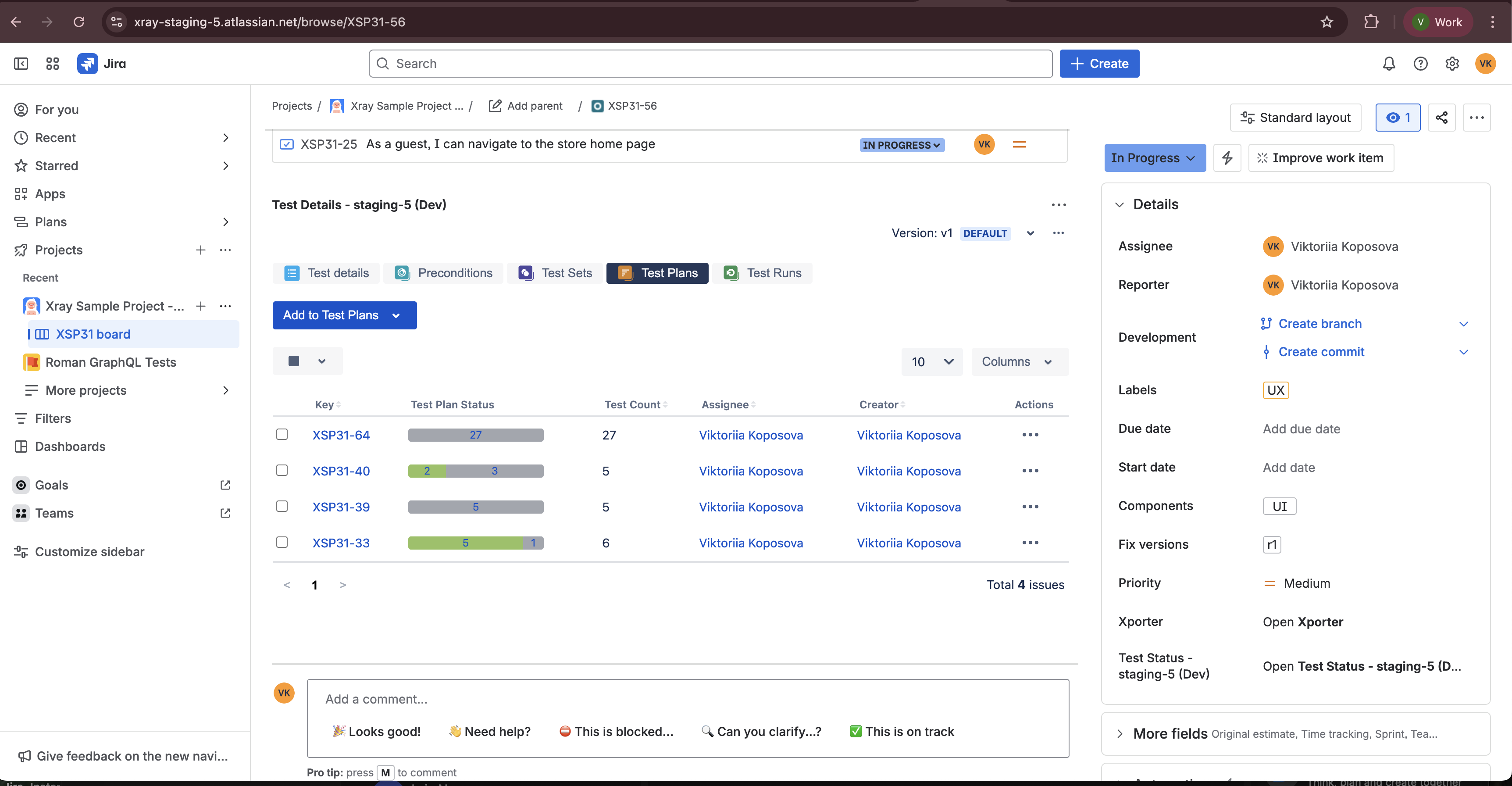 - Check the "Test Plan Status" Section