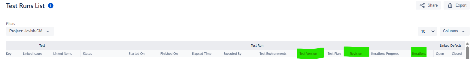 XRAYCLOUD-911 As an User I can choose the columns to display in the Test Run List report