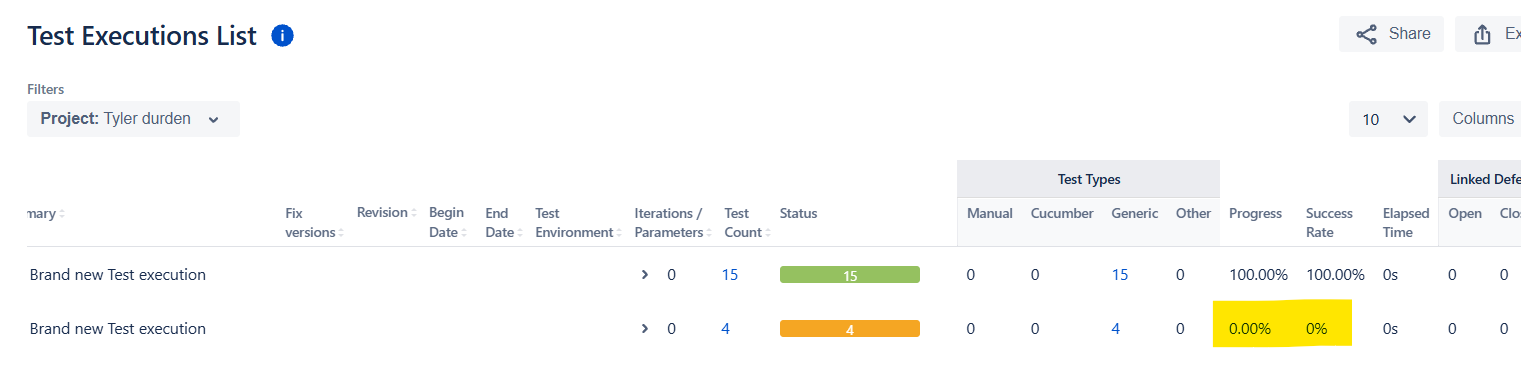 In the Test Executions list report, the custom final status for is not considered for the calculation of the Progress