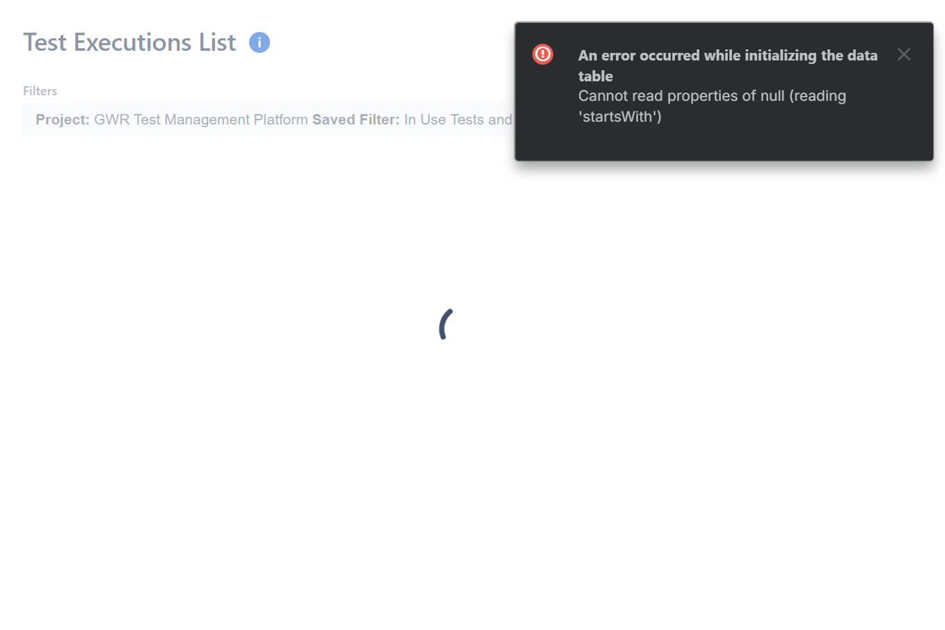 Description: Facing An error occurred initializing the data table error, when generating the Test Executions List report.