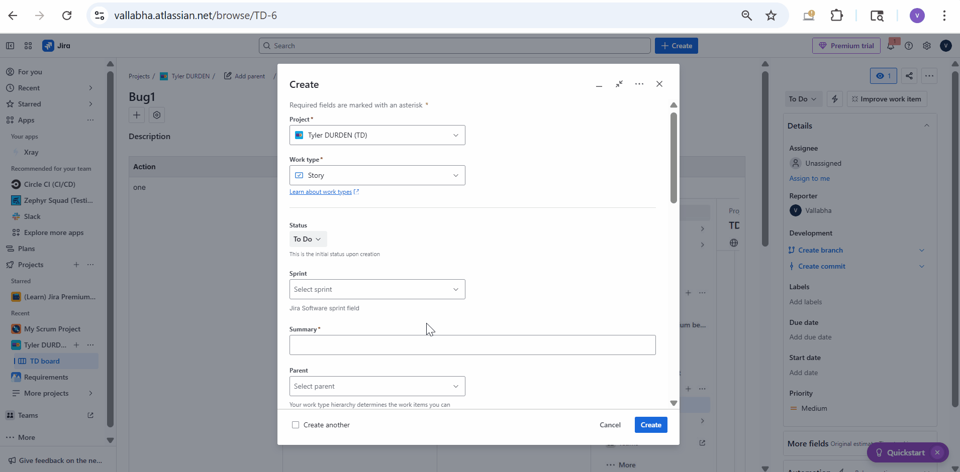 2. Create Xray Test by using Jira Issue create button