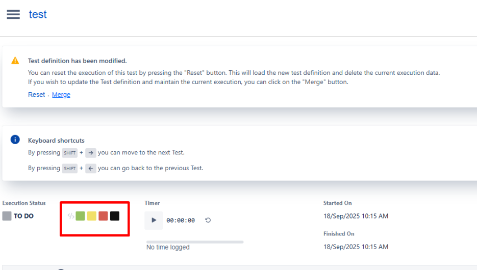 When updating a Test definition (adding or modifying steps) and accessing a previously executed Test Run by this Test, clicking “Merge” causes the Test Statuses
