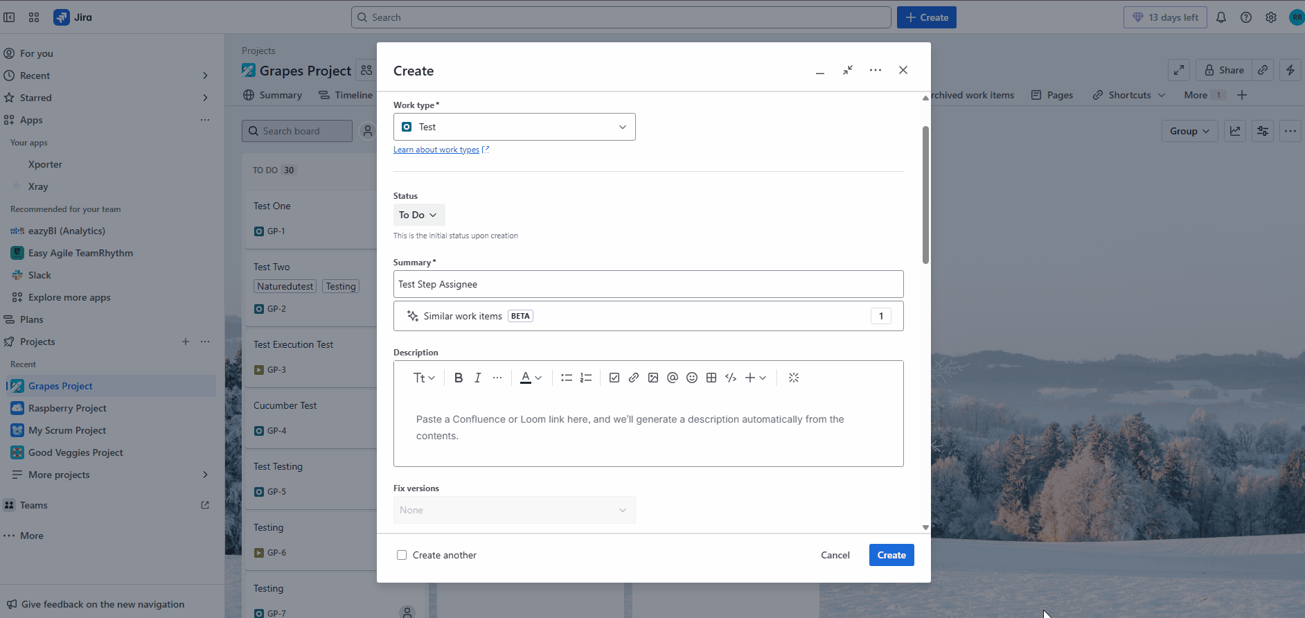 - Create an issue of type Test