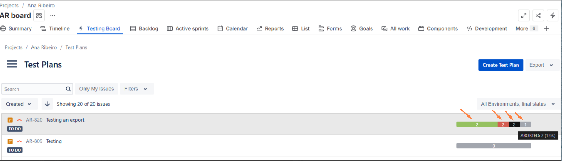 - Checking the Testing Board - Test Executions and Test Plan Board, the same incorrect percentage information is displayed