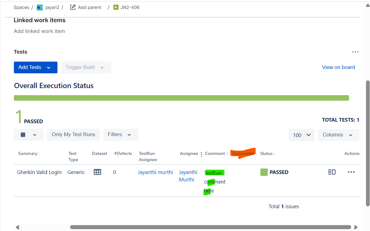 We want the comments on the Test issue to be shown in the Test Runs list Report and Test Execution issue as well.