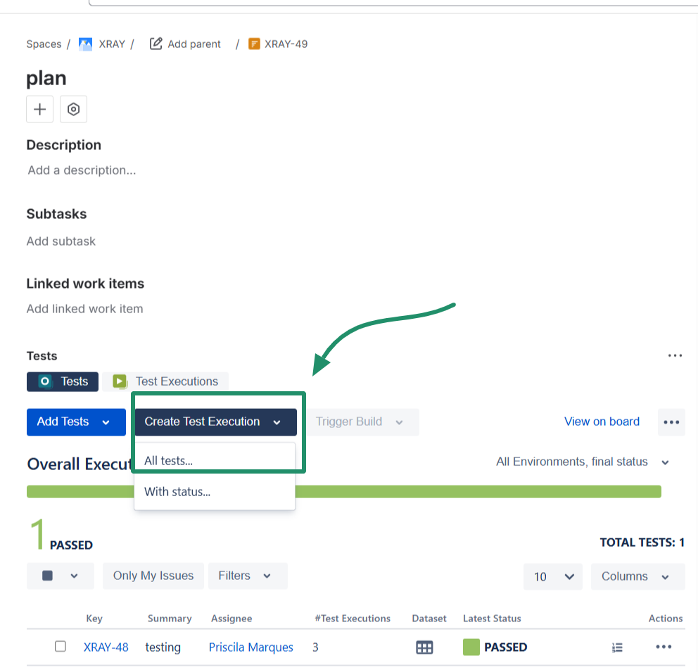 - This only occurs when using the Create Test Execution action inside the Test Plan board. Creating the same issue through the standard Jira “Create” dialog or from the issue view works normally.