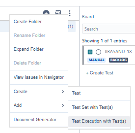- No error occurs when creating the same issue through the global Create dialog. Also, the Test is added to the new Test Execution from the UI.