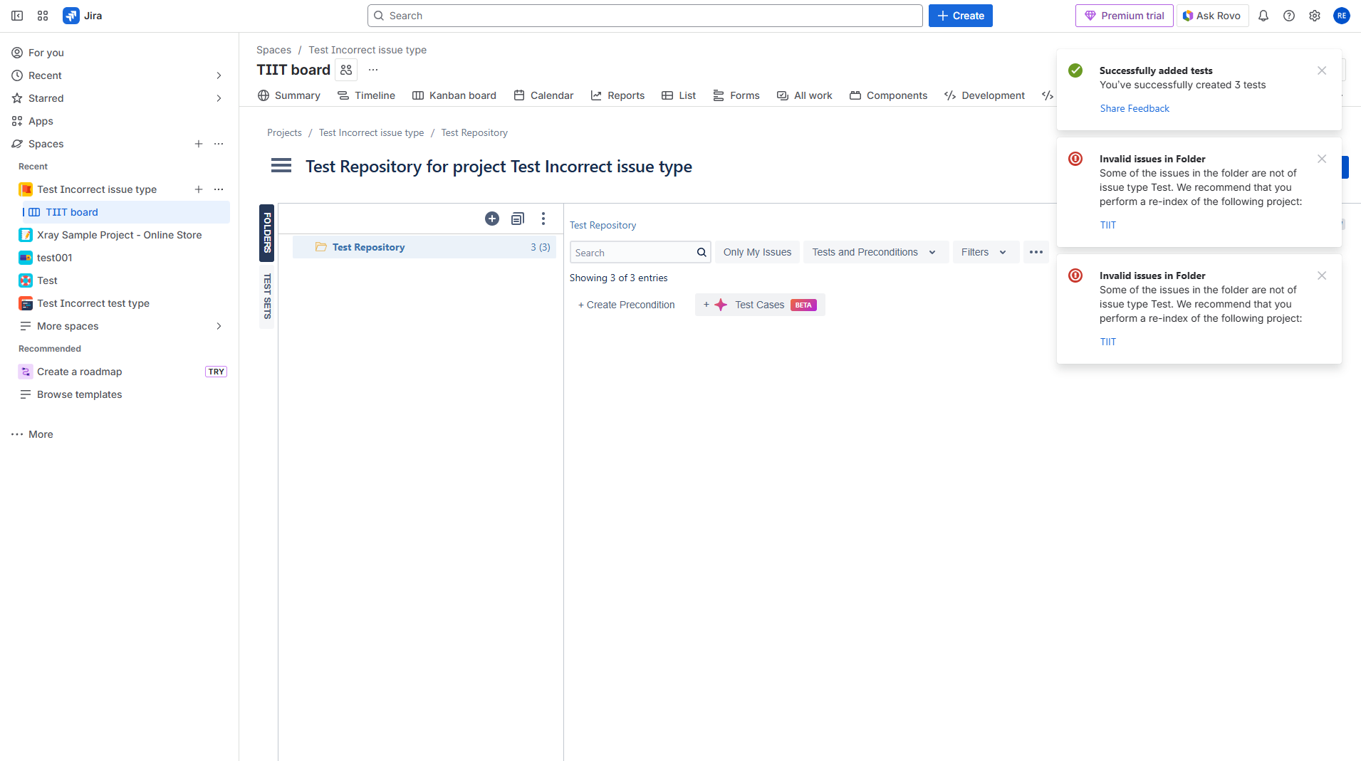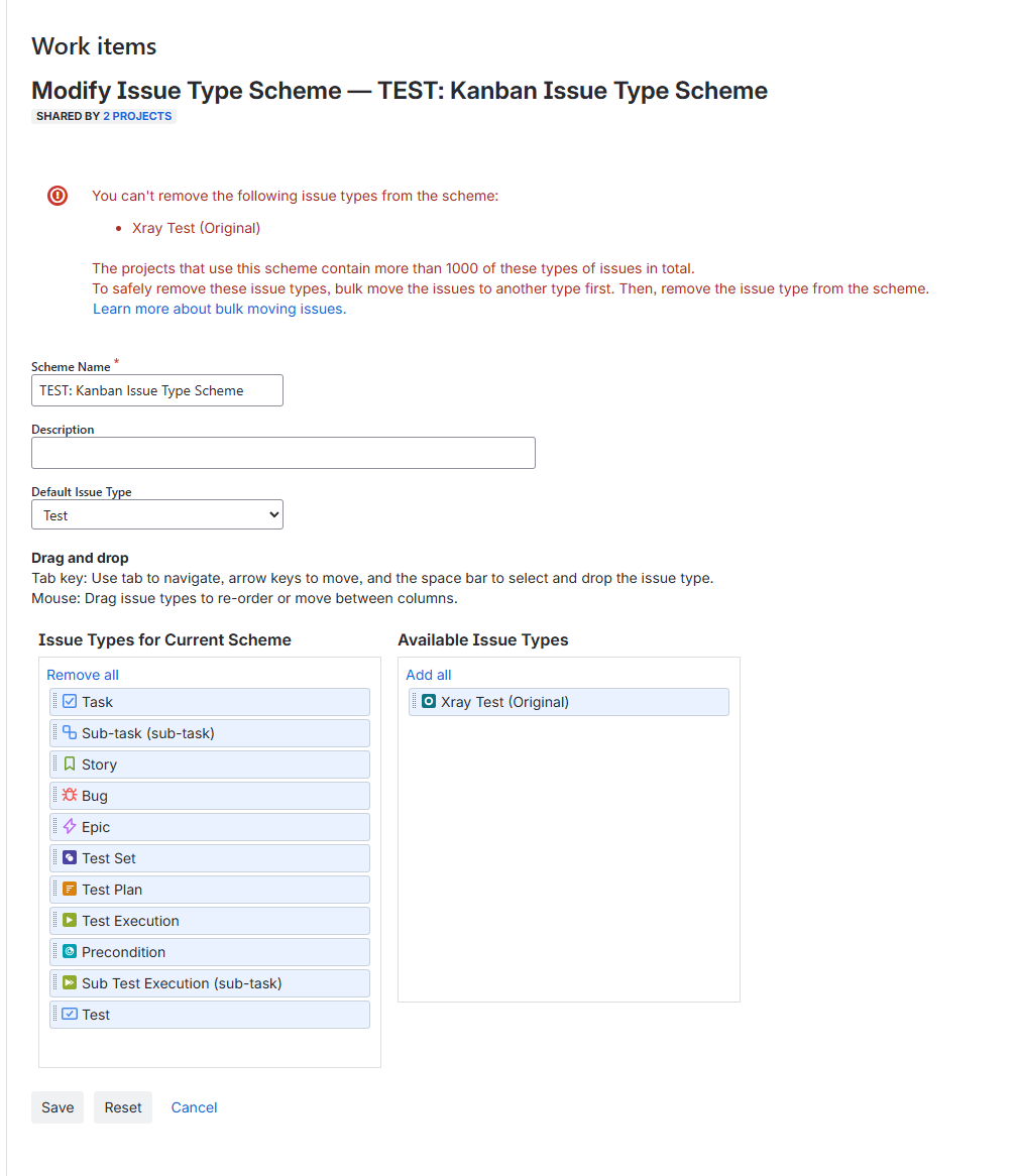 Workaround Rename the issuetype to Test
