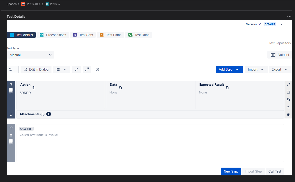 - Add a new Test Step to the migrated Test and confirm it is saved and displayed correctly.